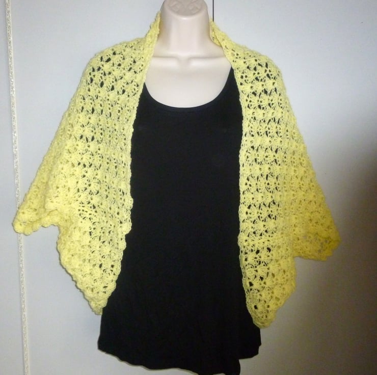 This shrug has been crocheted in soft acrylic 4ply yarn.