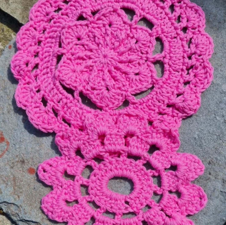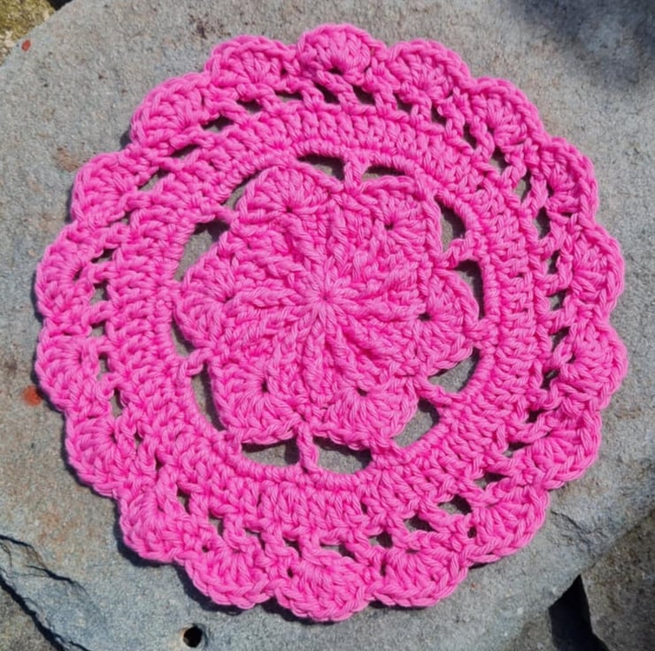 These Doilies are crocheted using 100% cotton yarn, perfect as vase placemats, larger coasters or just table decor!