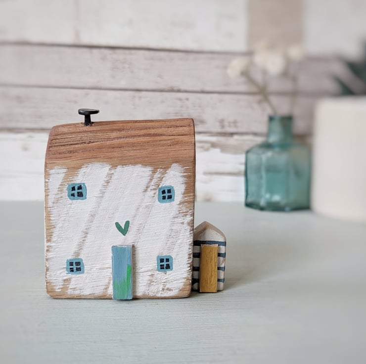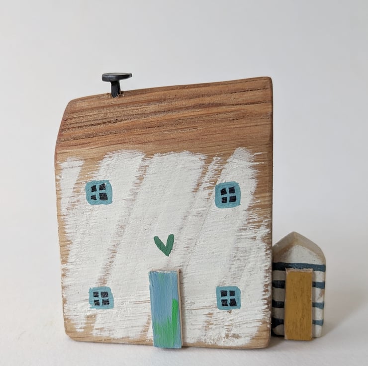 Little Handmade Painted Wooden House with Teeny Side Shed