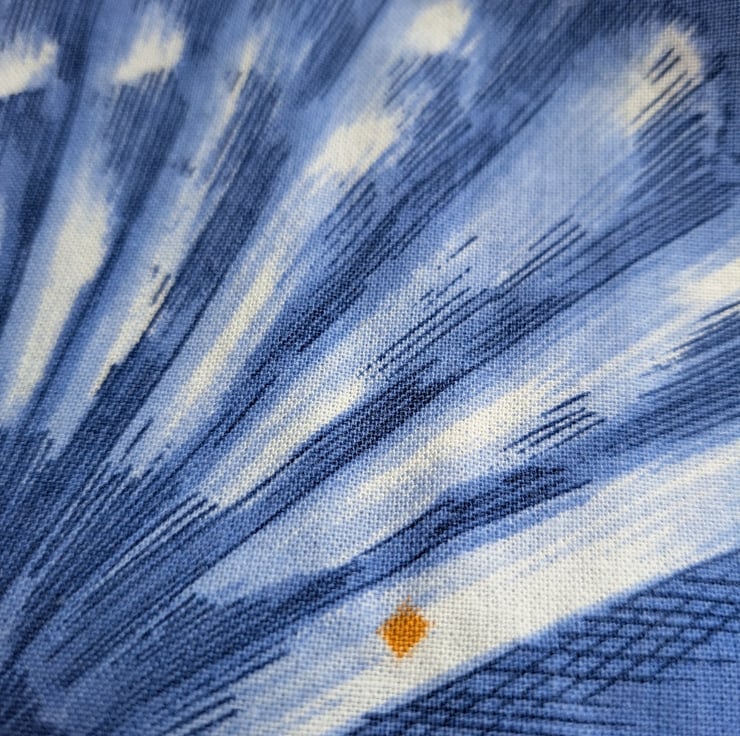 1 Blue shell design cotton. 153cm by 61cm. Small mark.