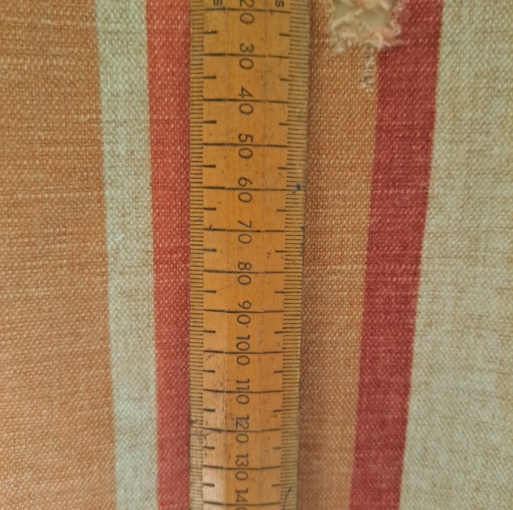 2 Rusty stripes thick cotton. 125cm by 49. Small frayed tear.