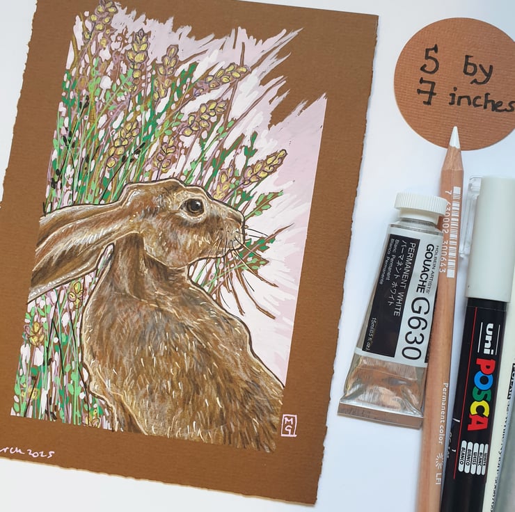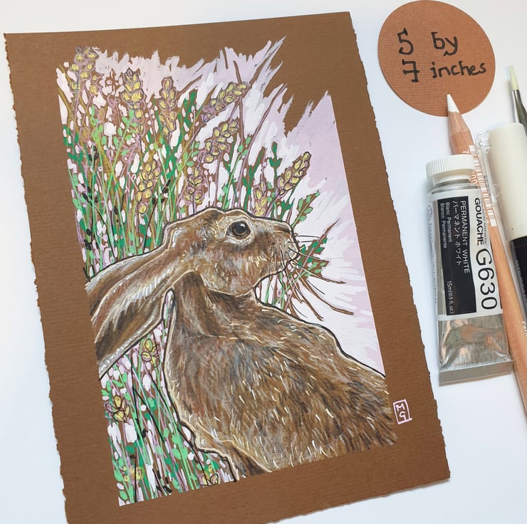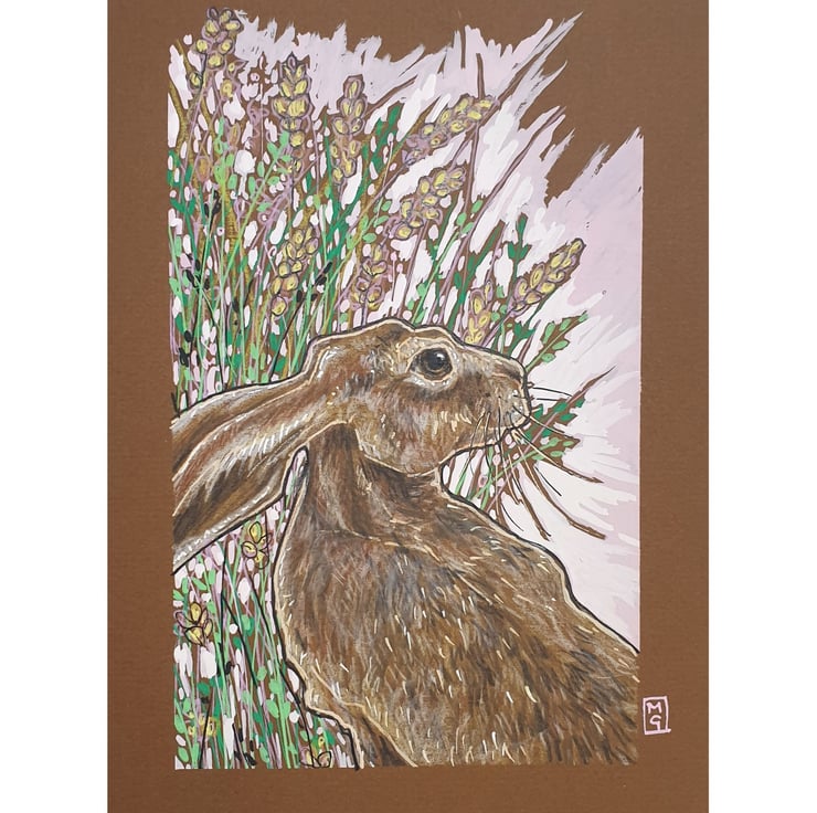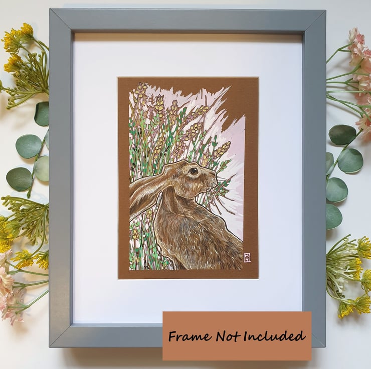 Brown Hare Portrait original artwork, small wildlife drawing, wall art