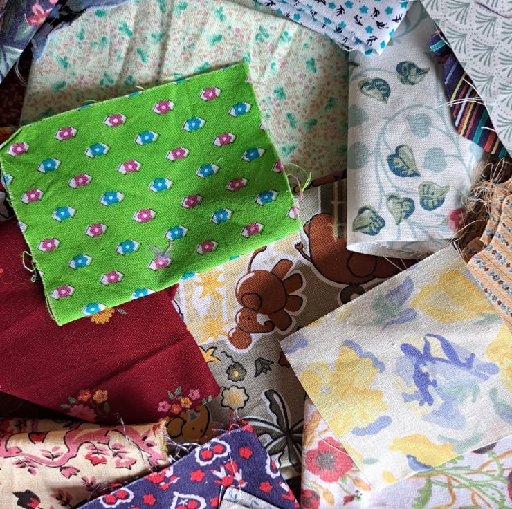 Do you love vintage fabric scraps? Of course you do - you wouldn't be here if you didn't. This adorable bundle contains 25 pieces of genuine vintage fabric, with images ranging from poppies to beach huts and roses to elephants. Assorted shapes and sizes. Includes some Laura Ashley snippets.