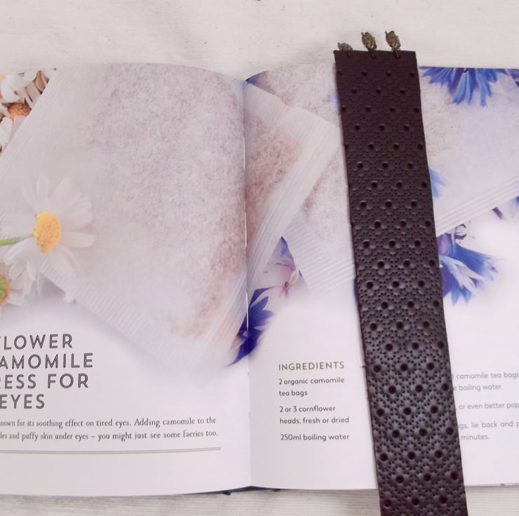 Leather Bookmark Flower Embossed and Ladybird Bead Bookmark