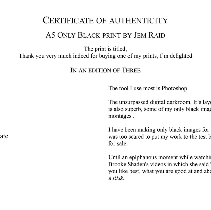 The essence of a photo, just black no shades of grey. Number one in an edition of three.