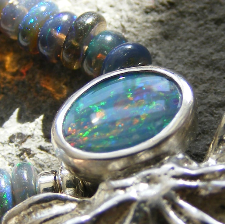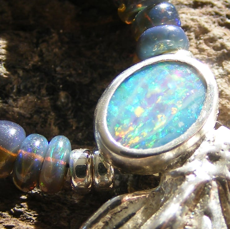 This star anise showcases the gorgeous natural Australian opal which I have set to highlight the colours in the Ethiopean opal beads.