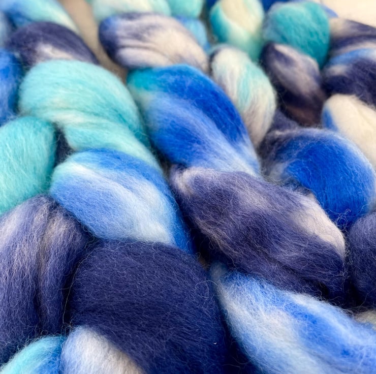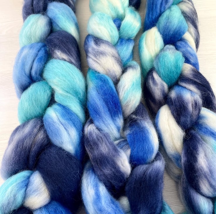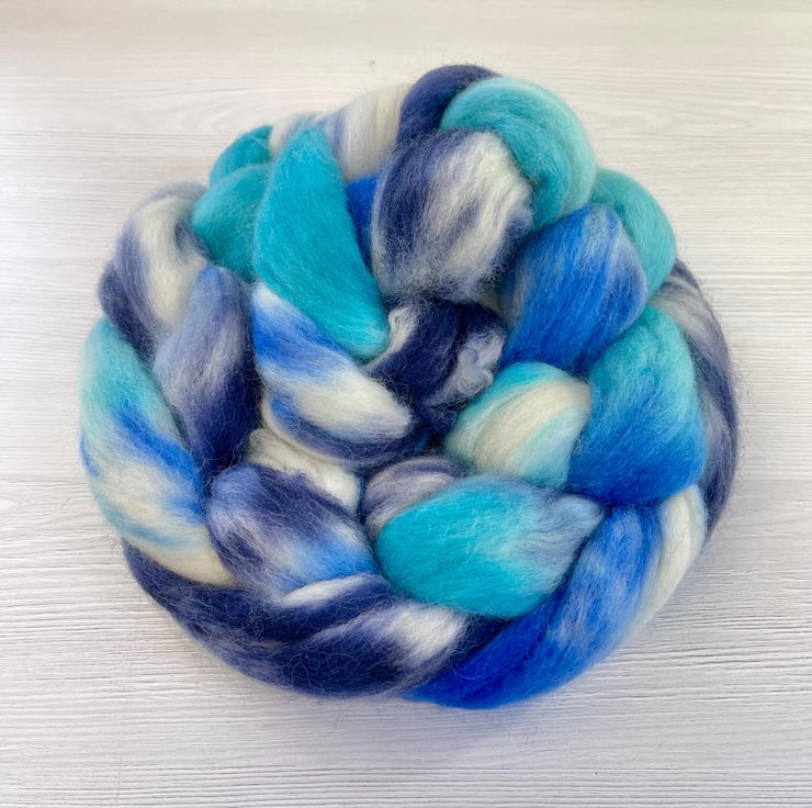 Ocean Waves - Corriedale Combed Wool Tops, hand dyed spinning fibre in a unique colour way.