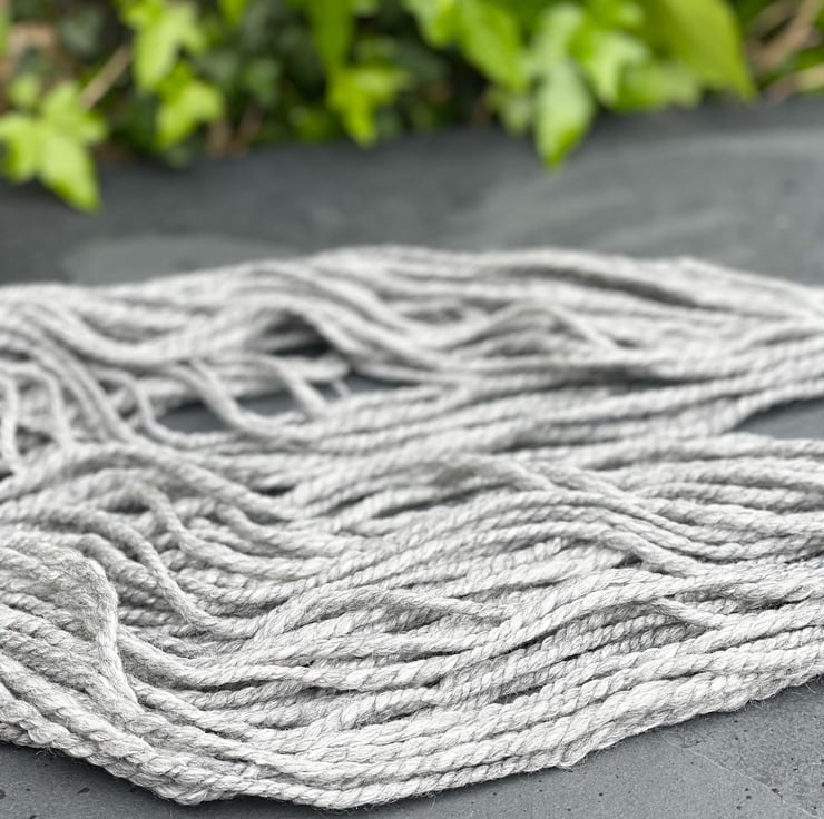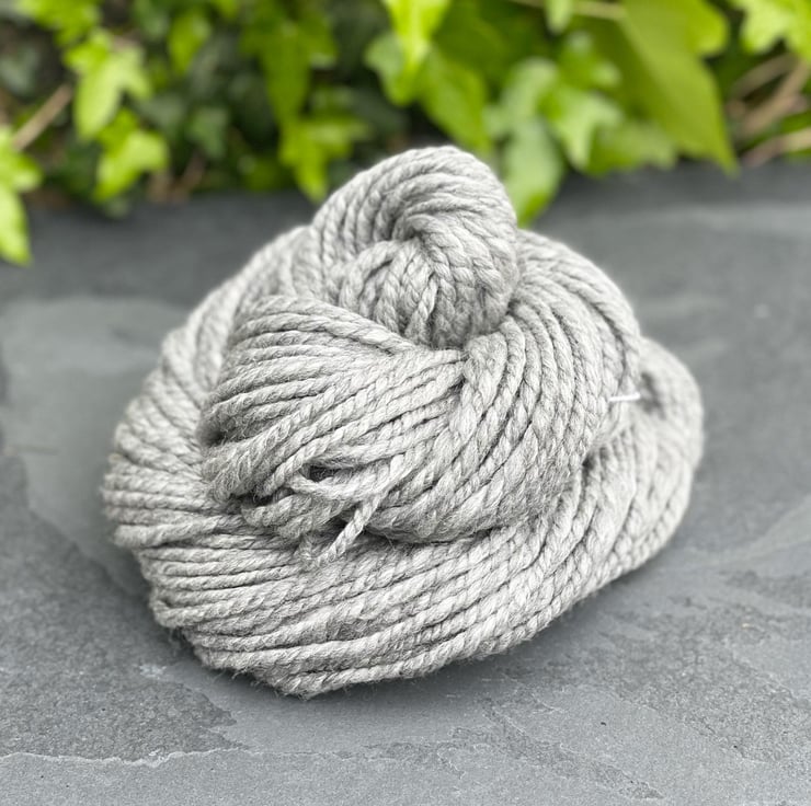 Handspun natural mid-grey Merino wool and white Tussah Silk blend 2 ply Yarn.
