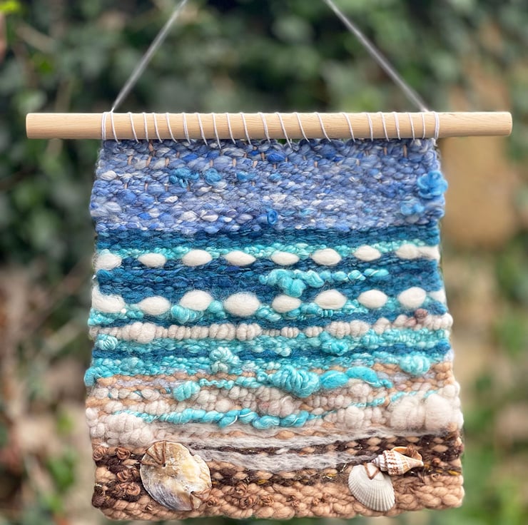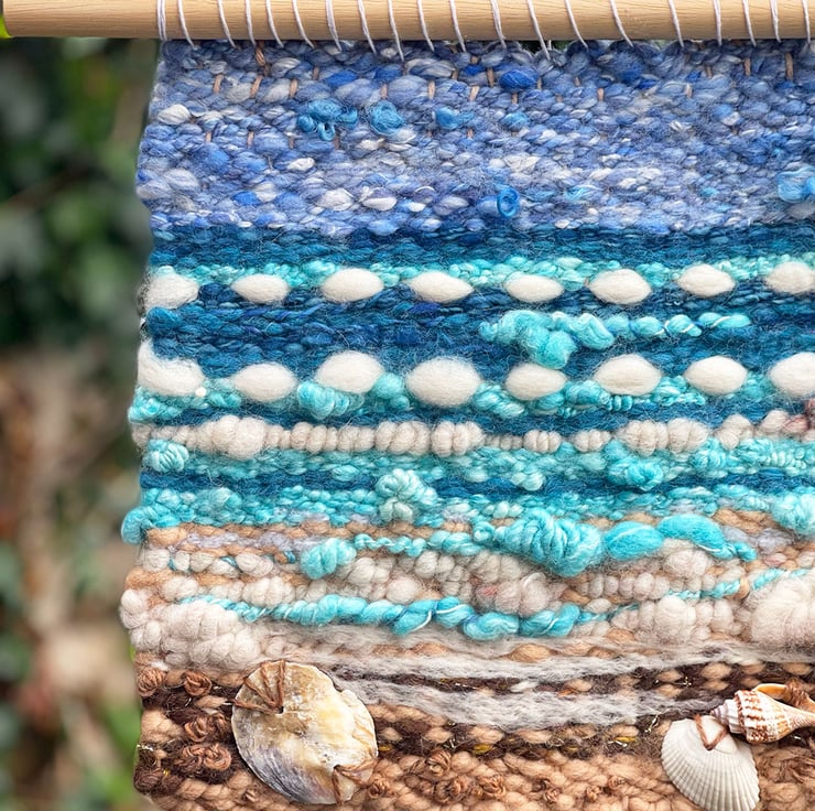 Sennen Beach Hand Woven Wall Hanging in Handspun Art Yarns