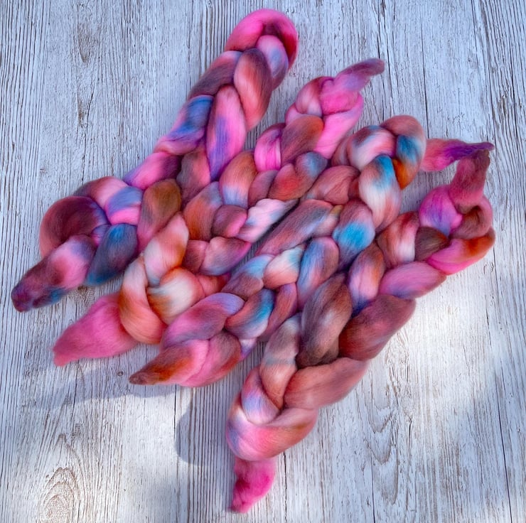 Punta Arenas originates from Chile it is a lovely soft fibre perfect for hand spinning and will make beautiful cosy knits or crochet projects. Hand dyed by me in my studio in a unique colour way.
