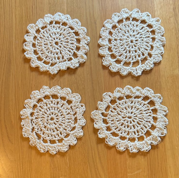 4x Cotton Crocheted Coasters ‘Vanilla’