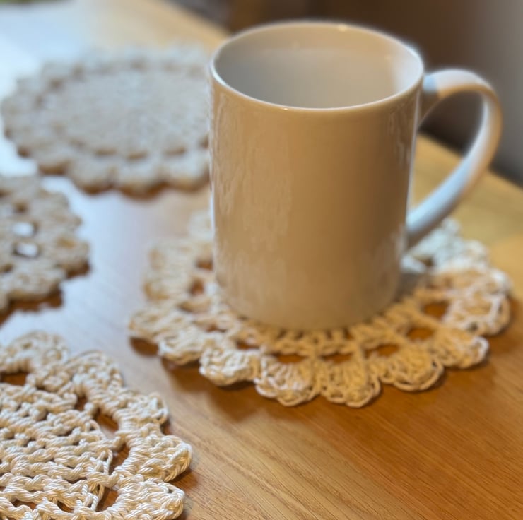 Lovingly made coasters for a cuppa with friends. Make you table more homely with these cotton crocheted coasters.