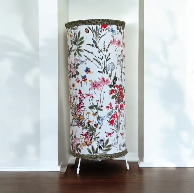 Bring the beauty of a blooming wildflower meadow into your home with this handmade lamp. Covered in delicate florals, butterflies and leafy stems on a soft white background, this lamp adds a touch of natural elegance to any room.