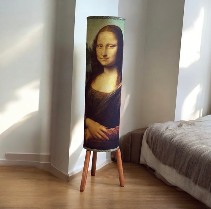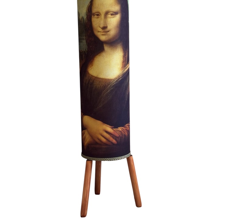 Make a bold statement with this unique handmade floor lamp, featuring the iconic Mona Lisa. With her mysterious smile and timeless beauty, she brings instant character and sophistication to any space.