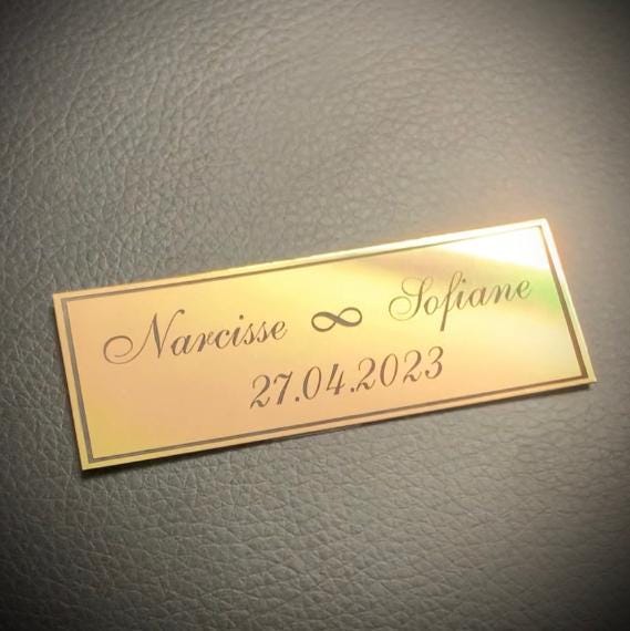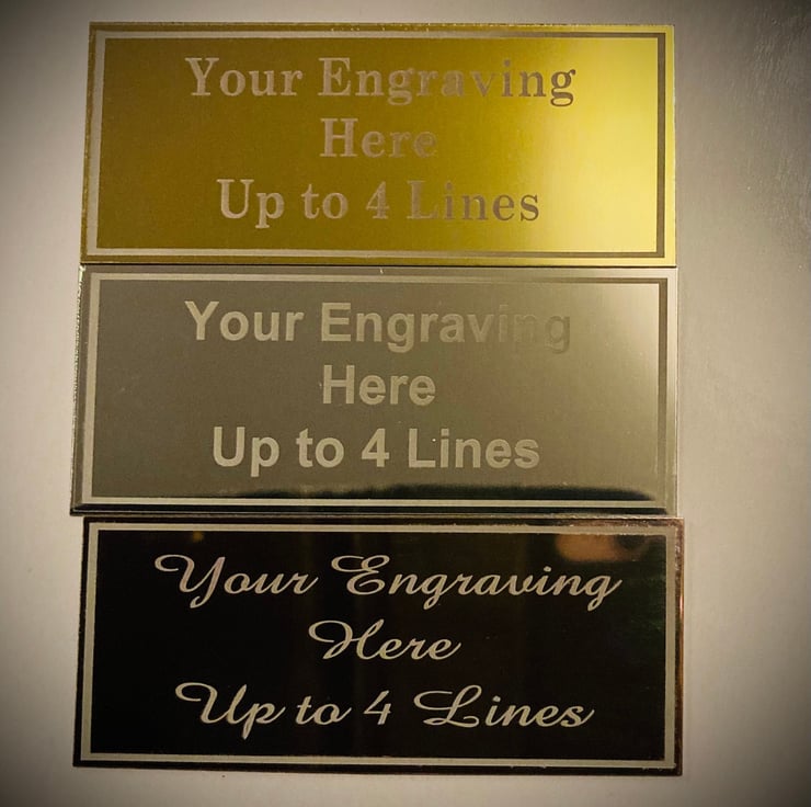 70x25mm personalised engraving plate with border. Available in gold silver and b