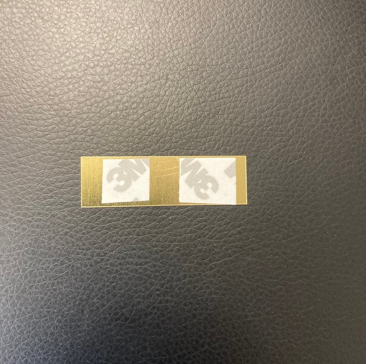 Taped with 3M double sided tape. The space in between the tape creates and air pocket so the tape stays secure to the item. The high quality 3M tape will stick to most surfaces. We always advise cleaning the surface of the item before applying the plate.