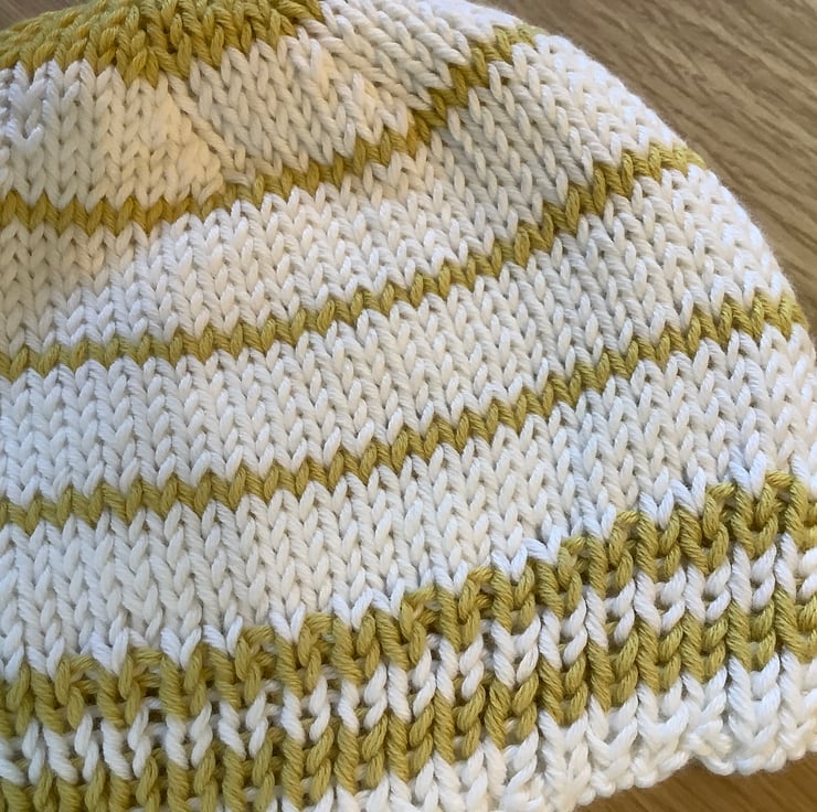 Lovely soft cotton yarn, with a nice contrast in colours. Thought it would make a nice comfy baby hat.