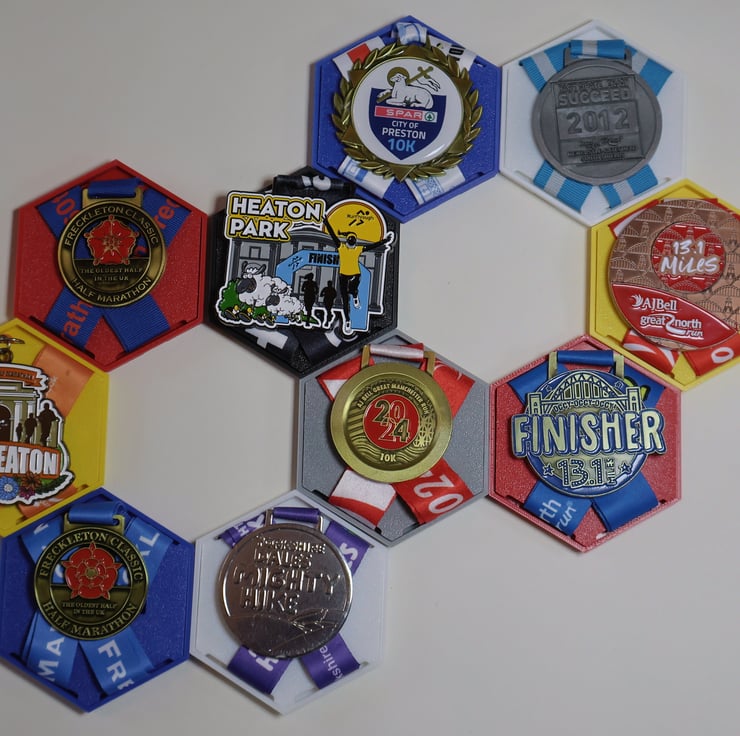 As a runner myself, I’ve collected a fair few medals over the years, and I wanted a stylish, space-saving way to display them that felt as rewarding as the races themselves. That’s what inspired me to create this Honeycomb Medal Display Holder - something modern, compact, and versatile enough to suit any space. The honeycomb design felt like the perfect balance of form and function, and I wanted it to be easy to mount or stand on a shelf, with options to fit different preferences. It’s a practical yet personal piece, born from my own need to celebrate milestones in a way that feels just right.