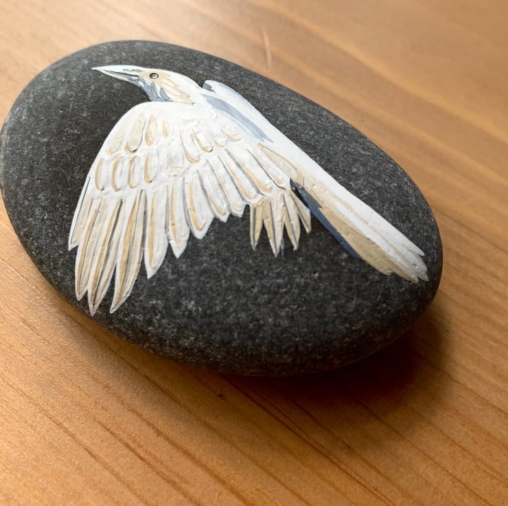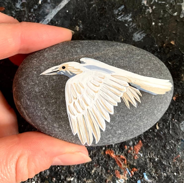 White Raven Stone - Handpainted Nature Inspired Corvid Art Unique Bird Gifts