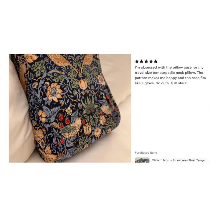 Tempur Original Travel Neck Pillow Cover William Morris Strawberry Thief Blue