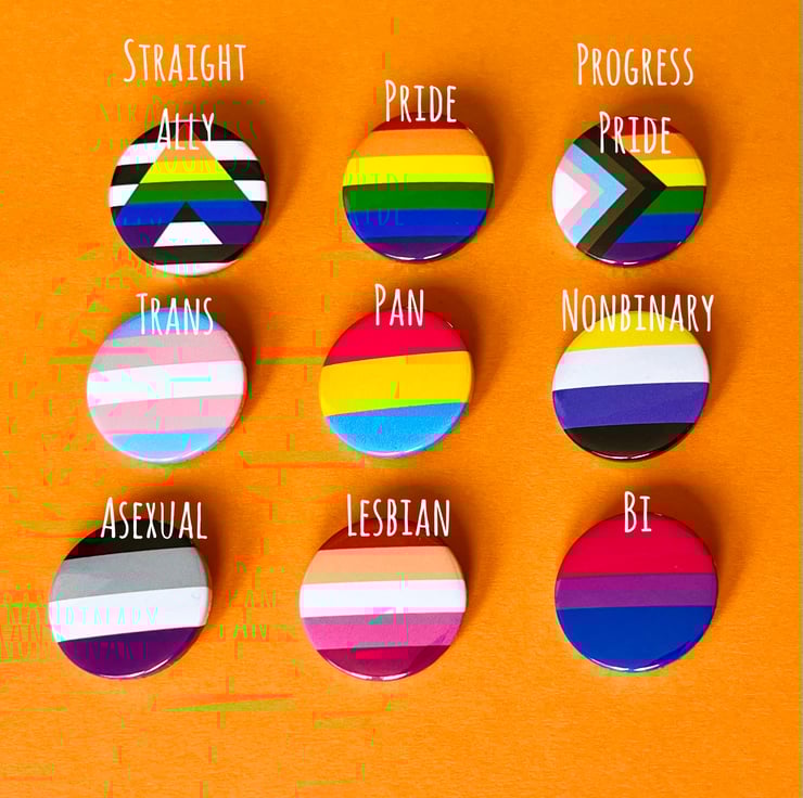 P is for pride card with your choice of pride flag. if you’d like a flag that is not listed here, please do get in touch as I love making custom orders. The mini badge measures just 25mm (1”) in diameter and is the perfect size to be worn on a lanyard.