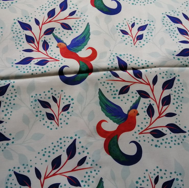 The lovely Sarah Payne design 'Birds of Paradise' was the inspiration for this piece. I enhanced the colours with red and blue.