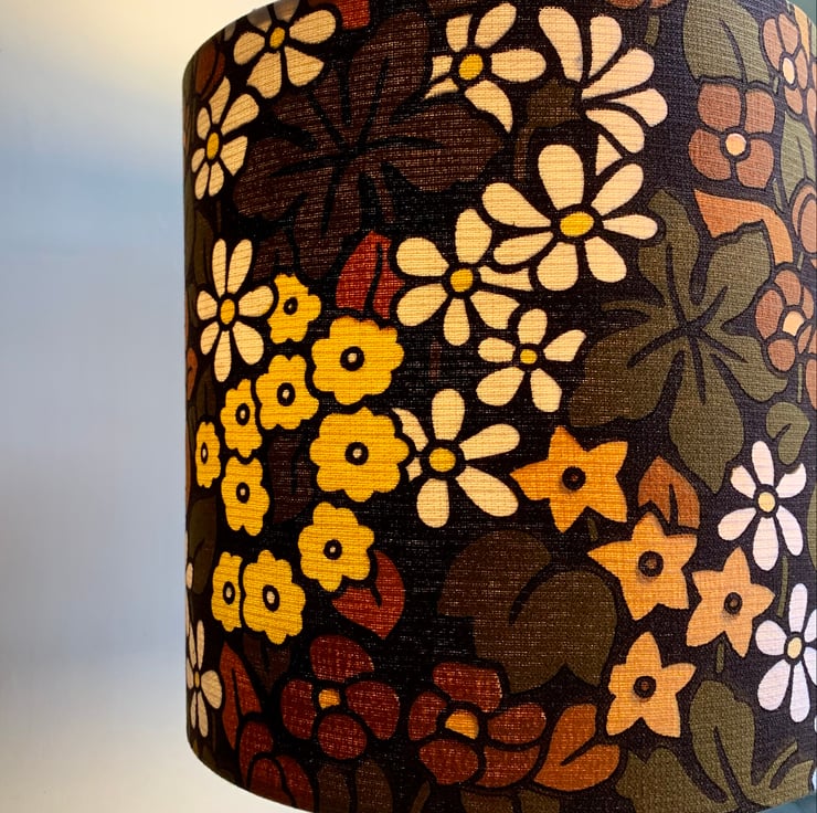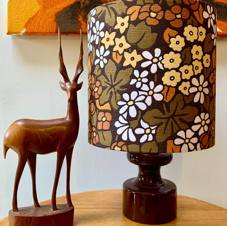 Retro Autumn Brown Orange Flower Leaf 60s 70s Vintage Fabric Lampshade