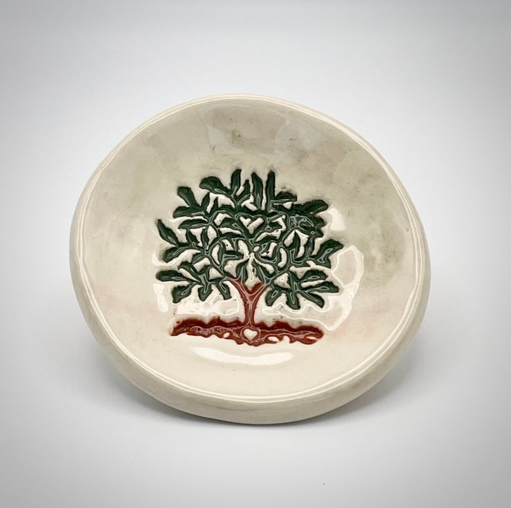 This is my Tree of Life ceramic trinket dish, it's perfect for rings, jewellery, coins, keys and your little treasures. The Tree of Life is an ancient Celtic symbol of balance, harmony and rebirth.