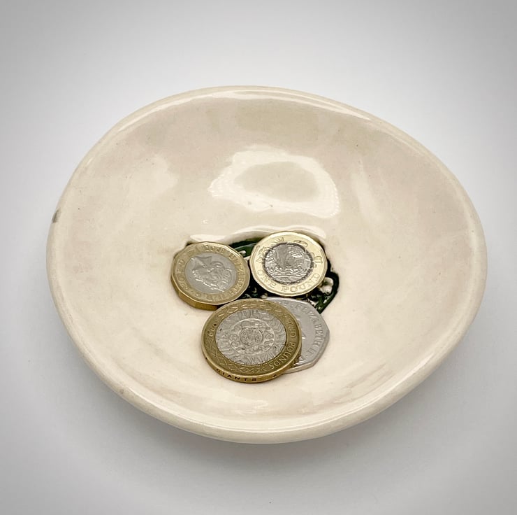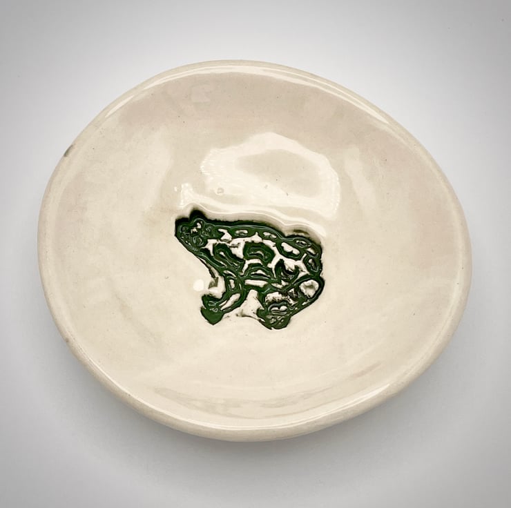 This is my ceramic trinket dish with a frog design - it's perfect for jewellery, keys, coins and your little treasures.