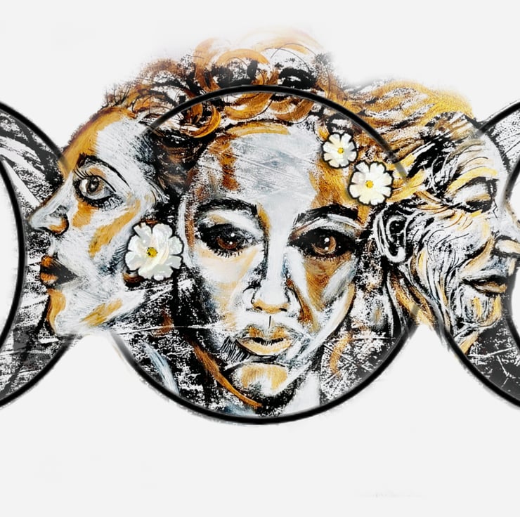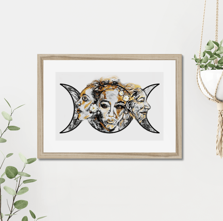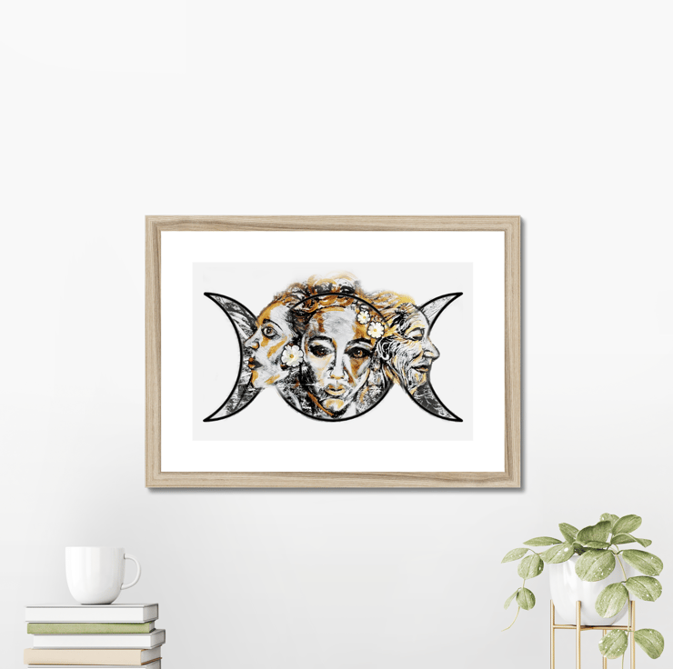 Celebrate feminine wisdom and spiritual connection with Maiden, Mother, Crone — a serene and symbolic art print by Ayrshire-based artist Rebecca Scott. Inspired by goddess mythology and the triple moon symbol, this piece represents the timeless archetypes of the Maiden, the Mother, and the Crone — embodying youth, creation, and wisdom.