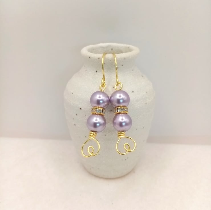 The three bead version is made using three 6mm glass pearl beads with two 4mm gold coloured diamanté spacer rondelles and finished with a pretty twirl base.