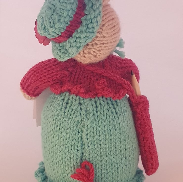 Dotty measures approx 7" in height and is for decoration only. She is made with wire beads and small parts so not suitable for children.
