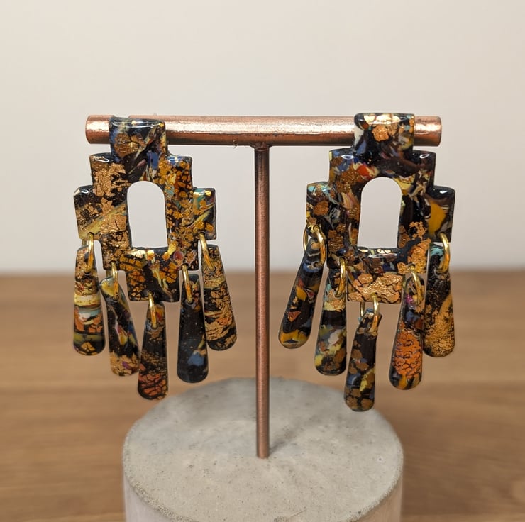 Hand made polymer clay earrings with an abstract pattern.hypo allergenic coating can be added to the fixing for free on request. Please see all photos for close up detail. All products handmade therefore there may be minor imperfections. Each pair sold as seen, message for more info