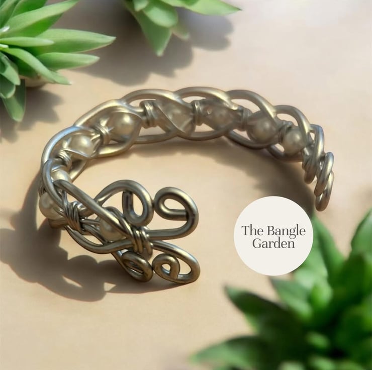 Handmade Wire wrapped bangle with faux pearls, now with matching earrings available.