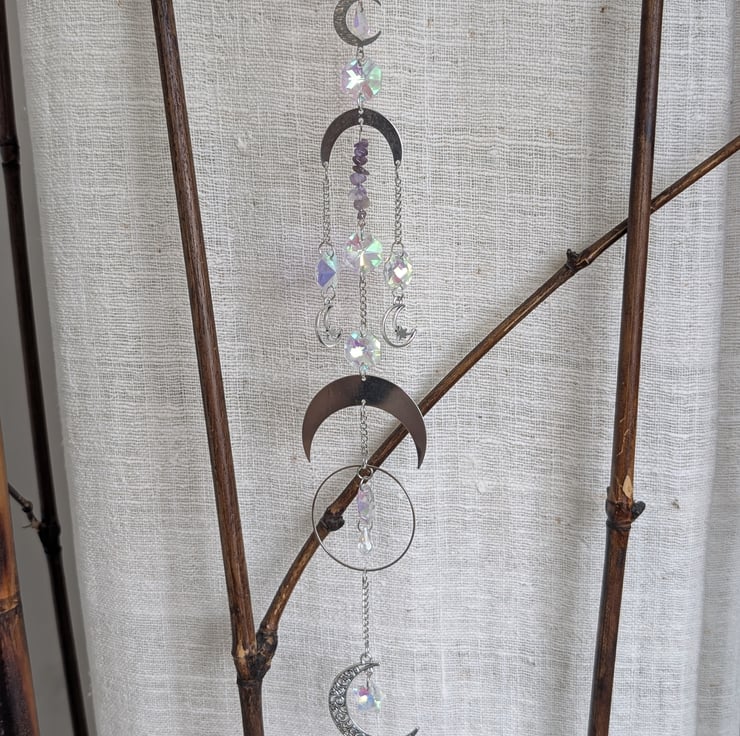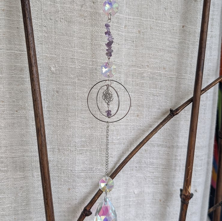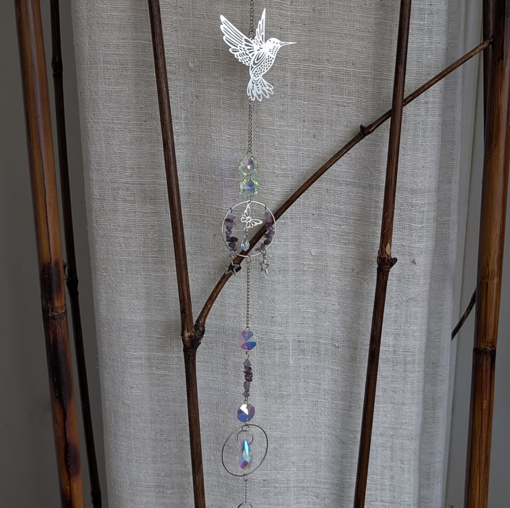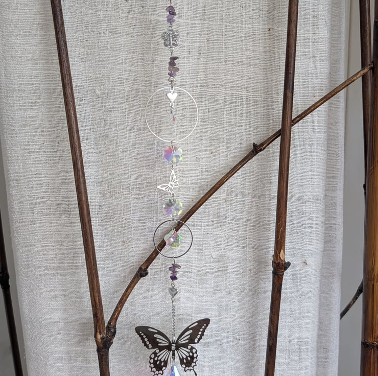 Suncatchers with hanging crystals to catch the light at your window and cast rainbows across the room. Each one is unique and handmade with a theme in mind.