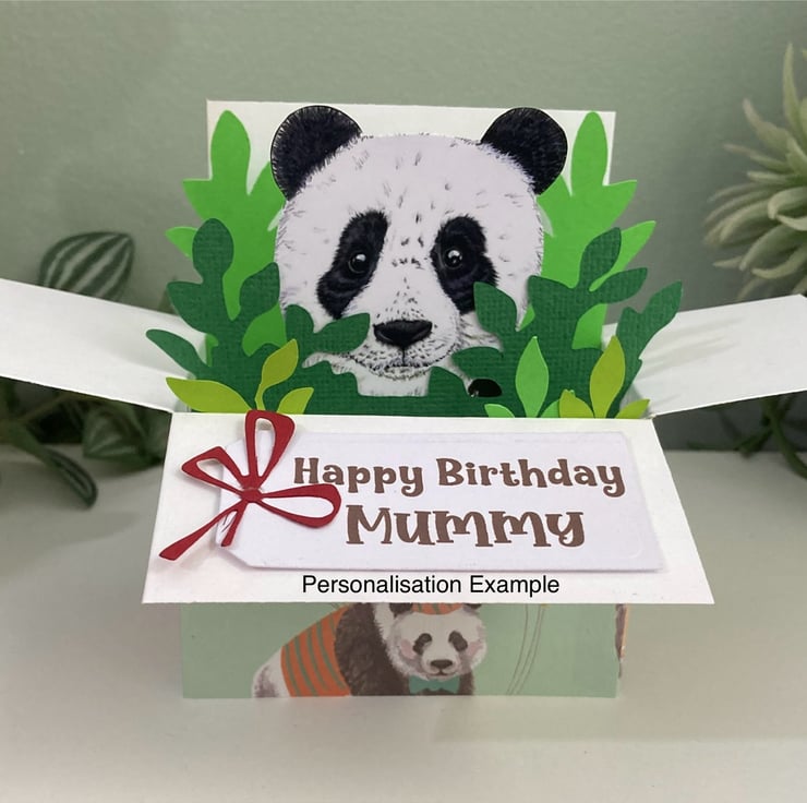 Panda card; Personalised, Birthday or Blank. Panda "pop up" gift card holder