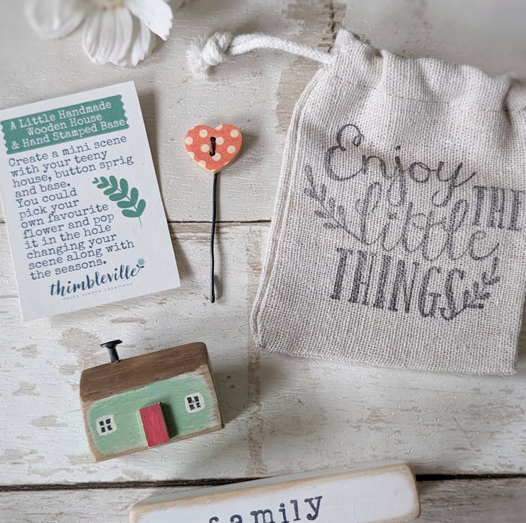 A teeny wooden house scene that you can choose to personalise with your own decoration!