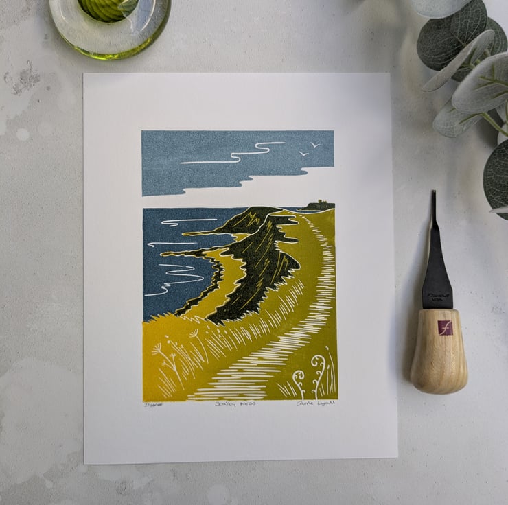Scarborough Coast limited edition linocut print, entitled Scalby Ness