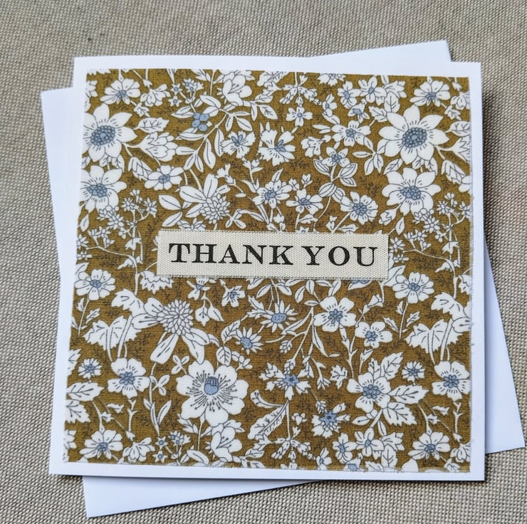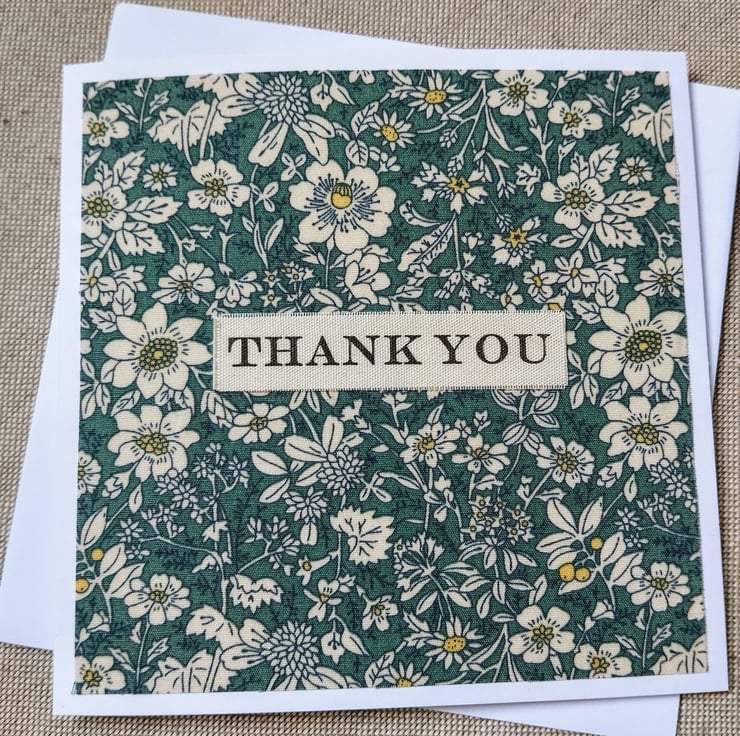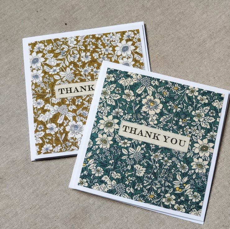 This set of 2 cards has pretty floral fabric in neutral and green. They measure approx 12.5x12.5cm and are blank inside.
