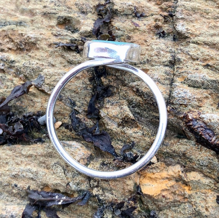 Aqua Twist Sea Glass and Sterling Silver Ring- Size S - 1171