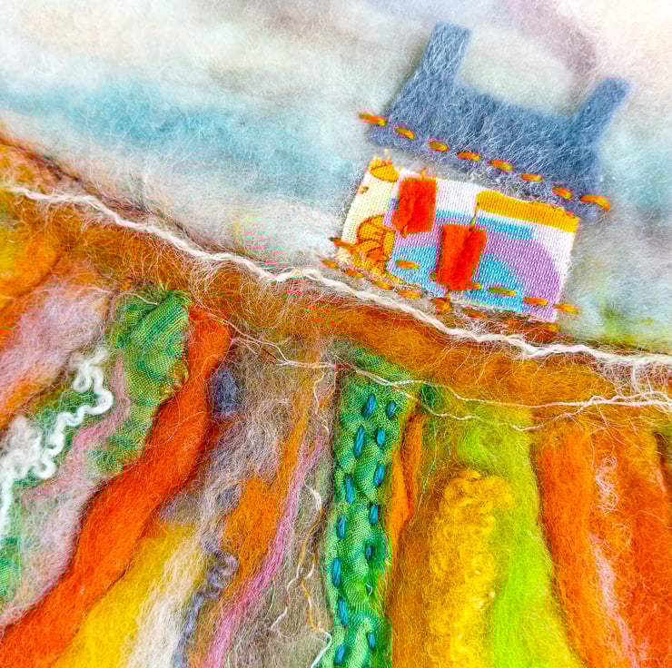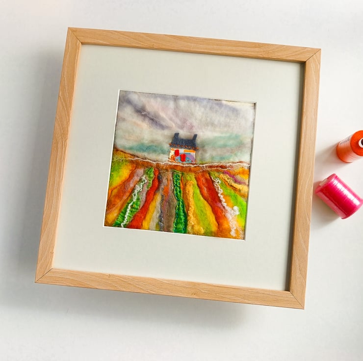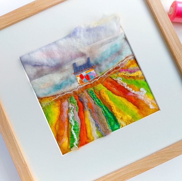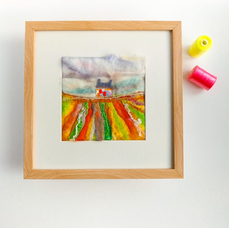 Across the Field to Home an Original Felted Landscape Artwork - SUPPLIED MOUNTED READY TO FRAME.