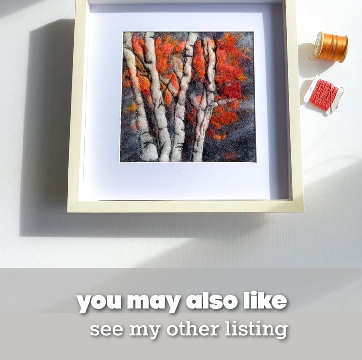 I’ve used fine wool fibres, fabric, silk along with metallic thread. The piece combines felting, appliqué, and hand stitching to create texture and depth.It’s finished with free motion stitching a favourite technique, which lets me “draw” with my sewing machine.