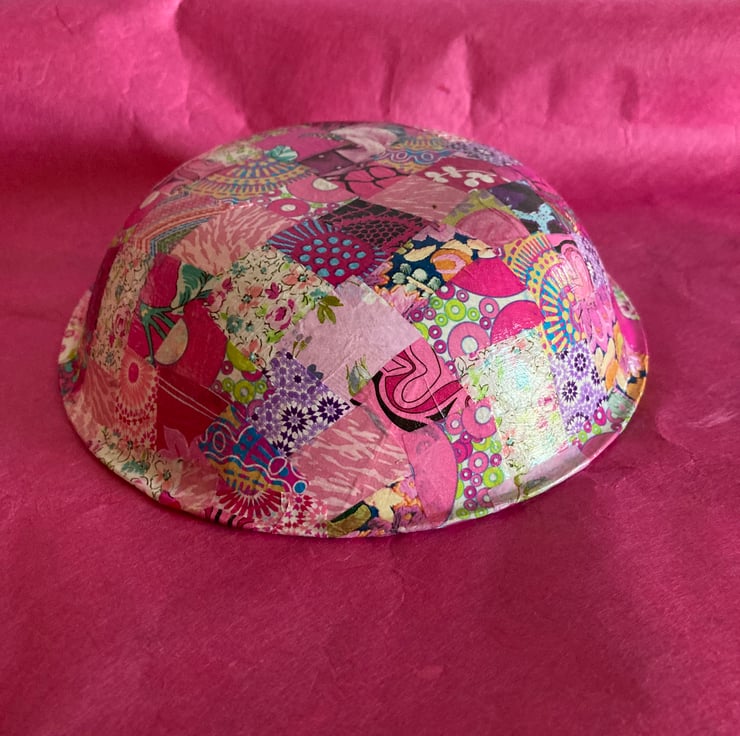It has been covered in a variety of mainly pinks and purple shades and then varnished to give extra durability