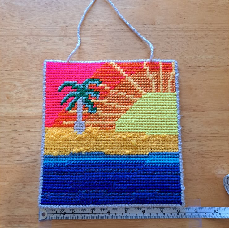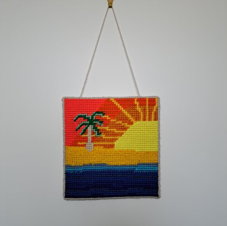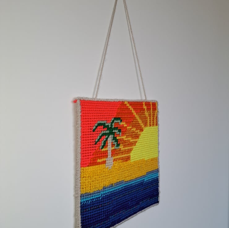 Island sunset wall hanging / wall art, handmade. Hang length can be adjusted as desired by pulling on the string and tying a knot at the back.