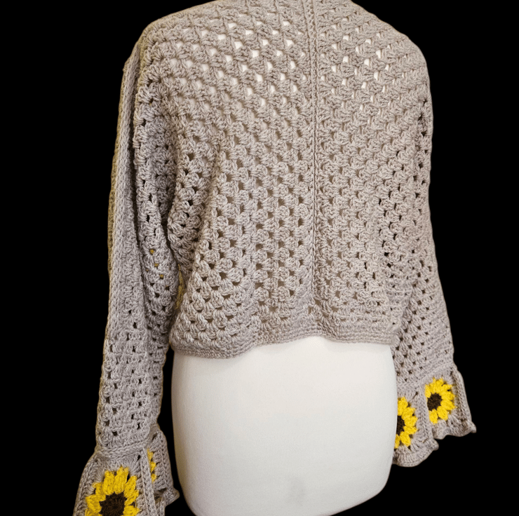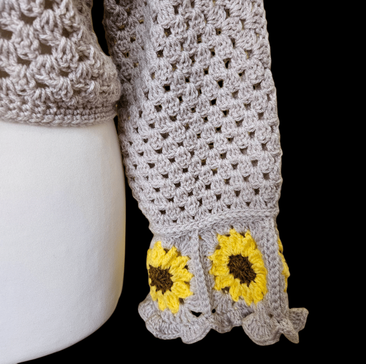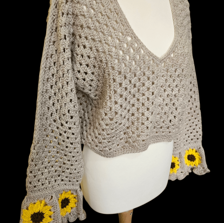 Sunflower sleeves crochet v neck jumper