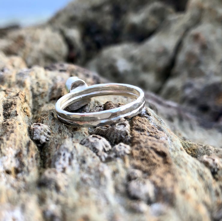 This has been set in a fine silver bezel (.999) with a double band of recycled (ecosilver) sterling silver (.925) 1.5mm round wire, this has been hammered to give it the extra wow factor!