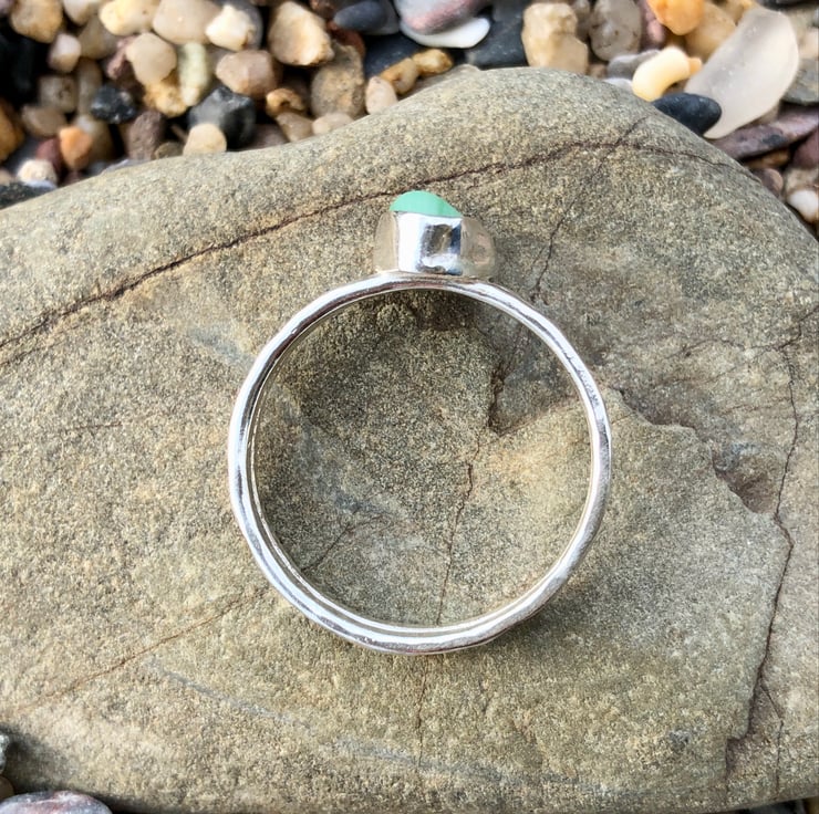 Stunning Green Milk Sea Glass and Sterling Silver Double Ring - Size S - 1194