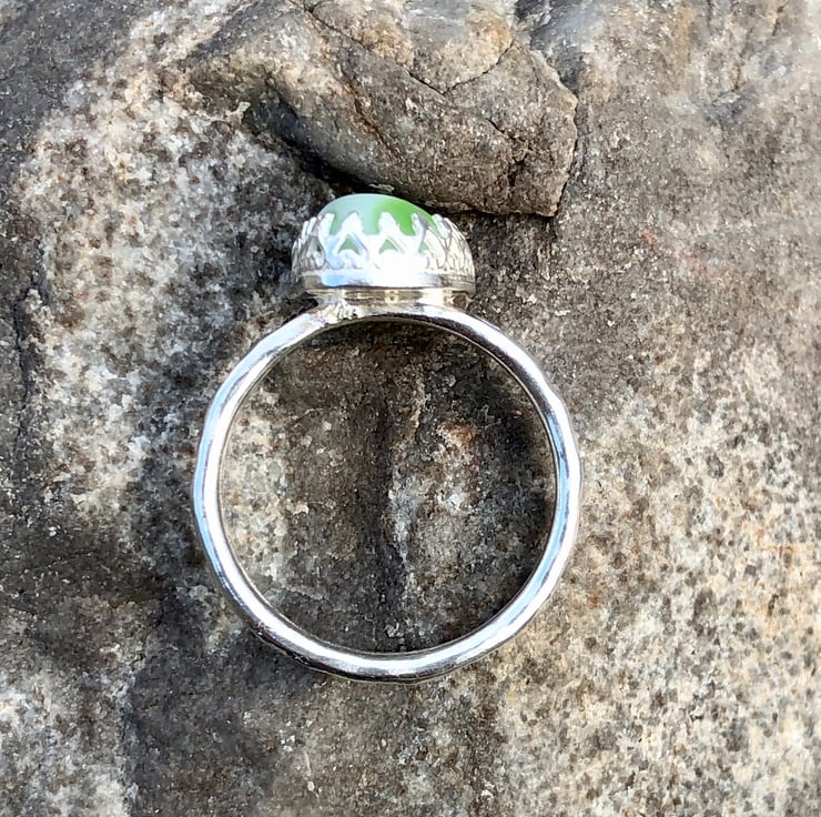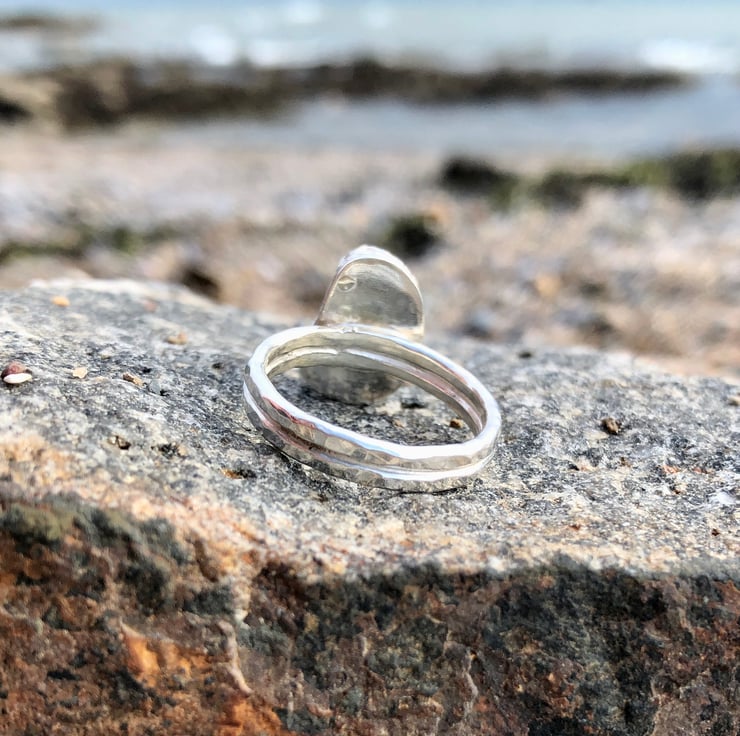 This has been set in a decorative silver bezel with a double band of recycled (ecosilver) sterling silver (.925) 1.8mm round wire, this has been hammered to give it the extra wow factor!