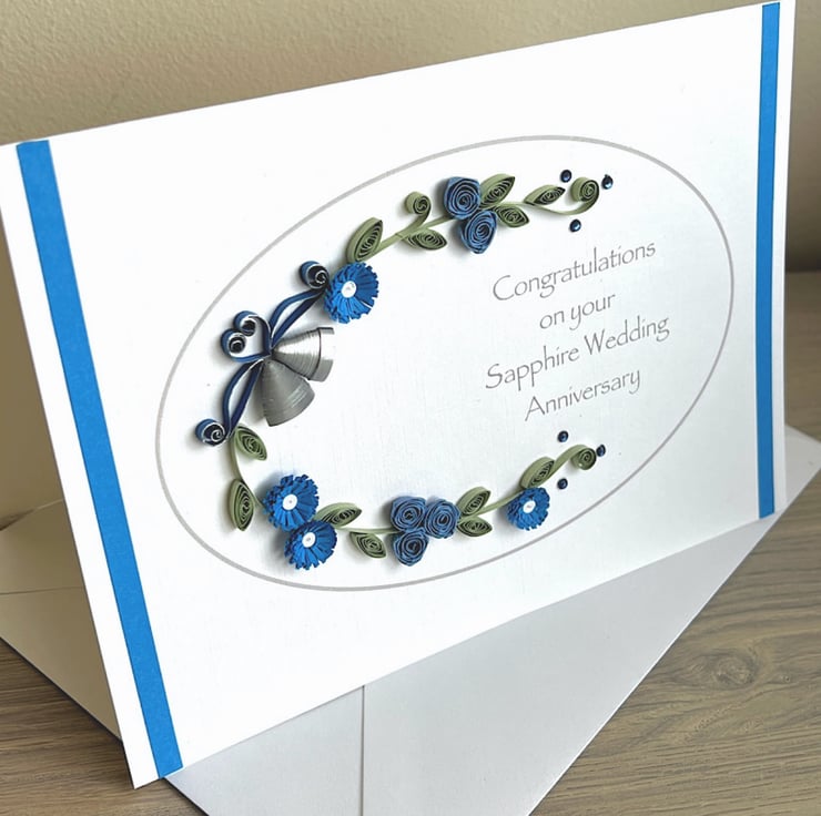 Handmade quilled 45th or 65th sapphire wedding anniversary card