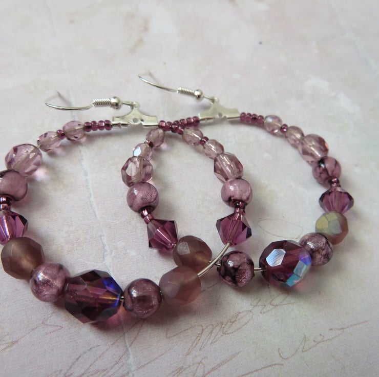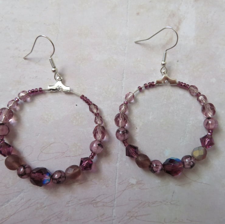 Amethyst Haze Boho Beaded Hoop Earrings.